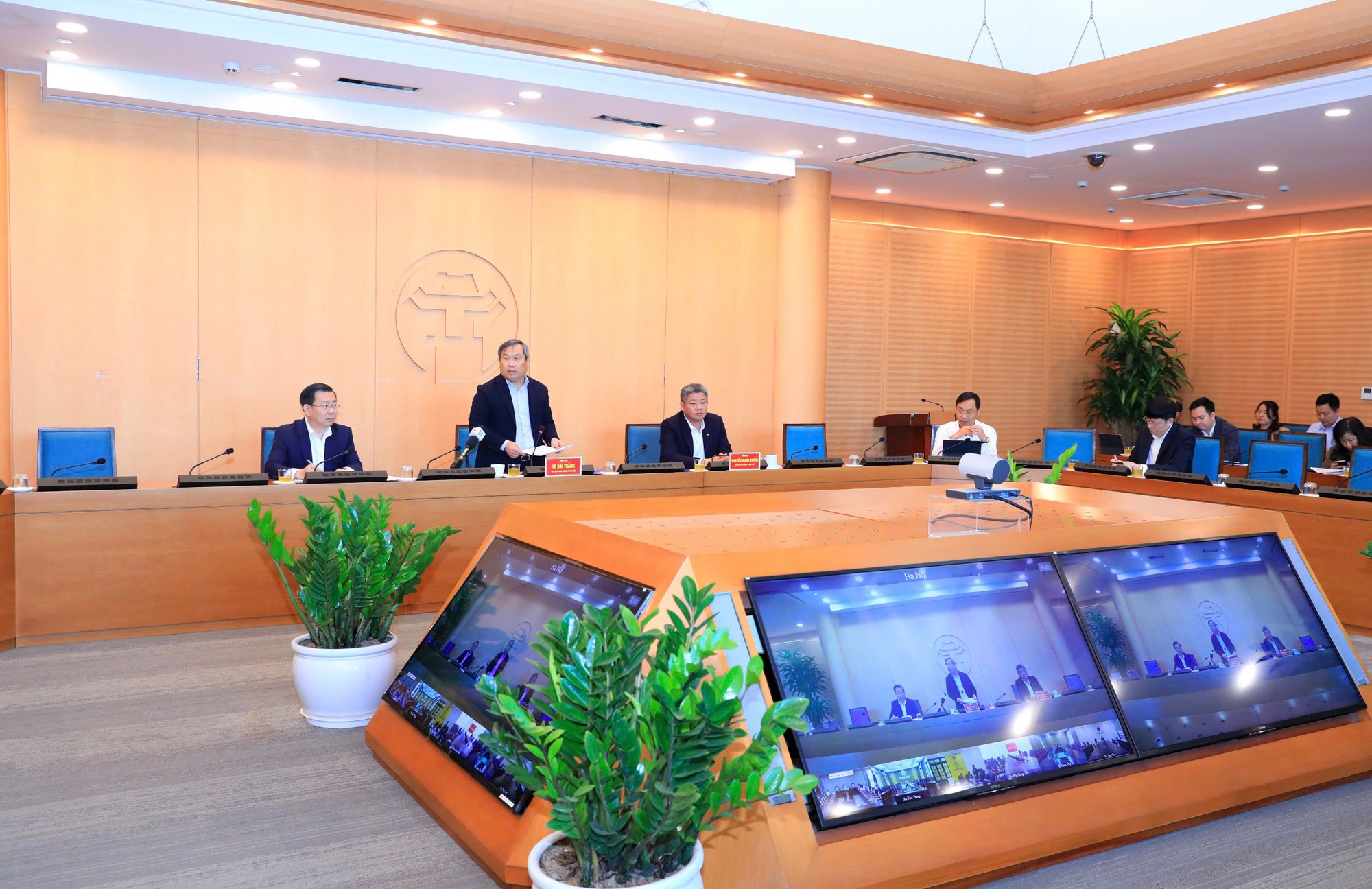 Chủ tịch UBND thành phố Hà Nội Vũ Đại Thắng phát biểu chỉ đạo tại cuộc họp. Ảnh: Phạm Linh
