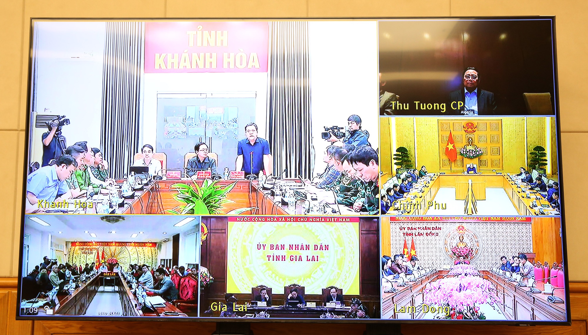 Phó Thủ tướng Thường trực Chính phủ Nguyễn Hòa Bình dự tại điểm cầu trụ sở Chính phủ, Phó Thủ tướng Chính phủ Hồ Quốc Dũng dự tại điểm cầu trụ sở UBND tỉnh Khánh Hòa, lãnh đạo Ban Chỉ đạo phòng thủ dân sự quốc gia, các bộ ngành, địa phương tham dự họp tại các điểm cầu trong nước.